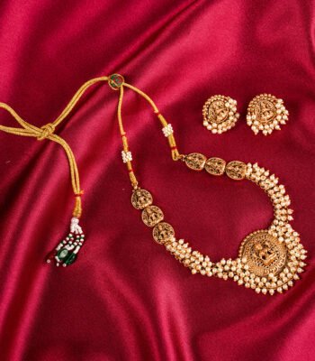 Original price was: ₹1,500.00.₹1,300.00Current price is: ₹1,300.00.Padmaraga Haaram Set