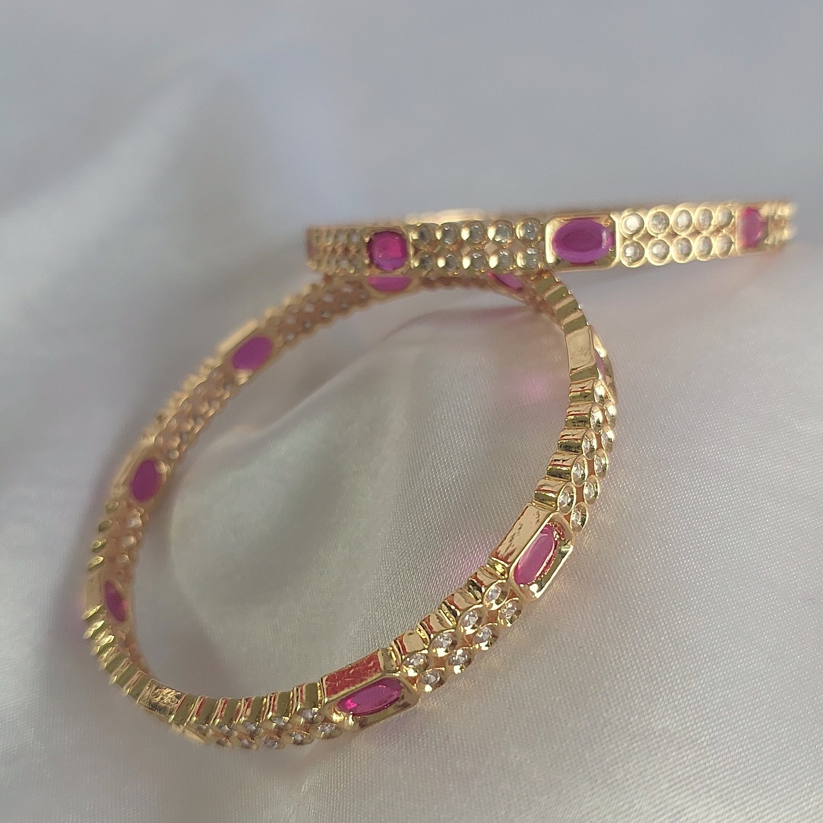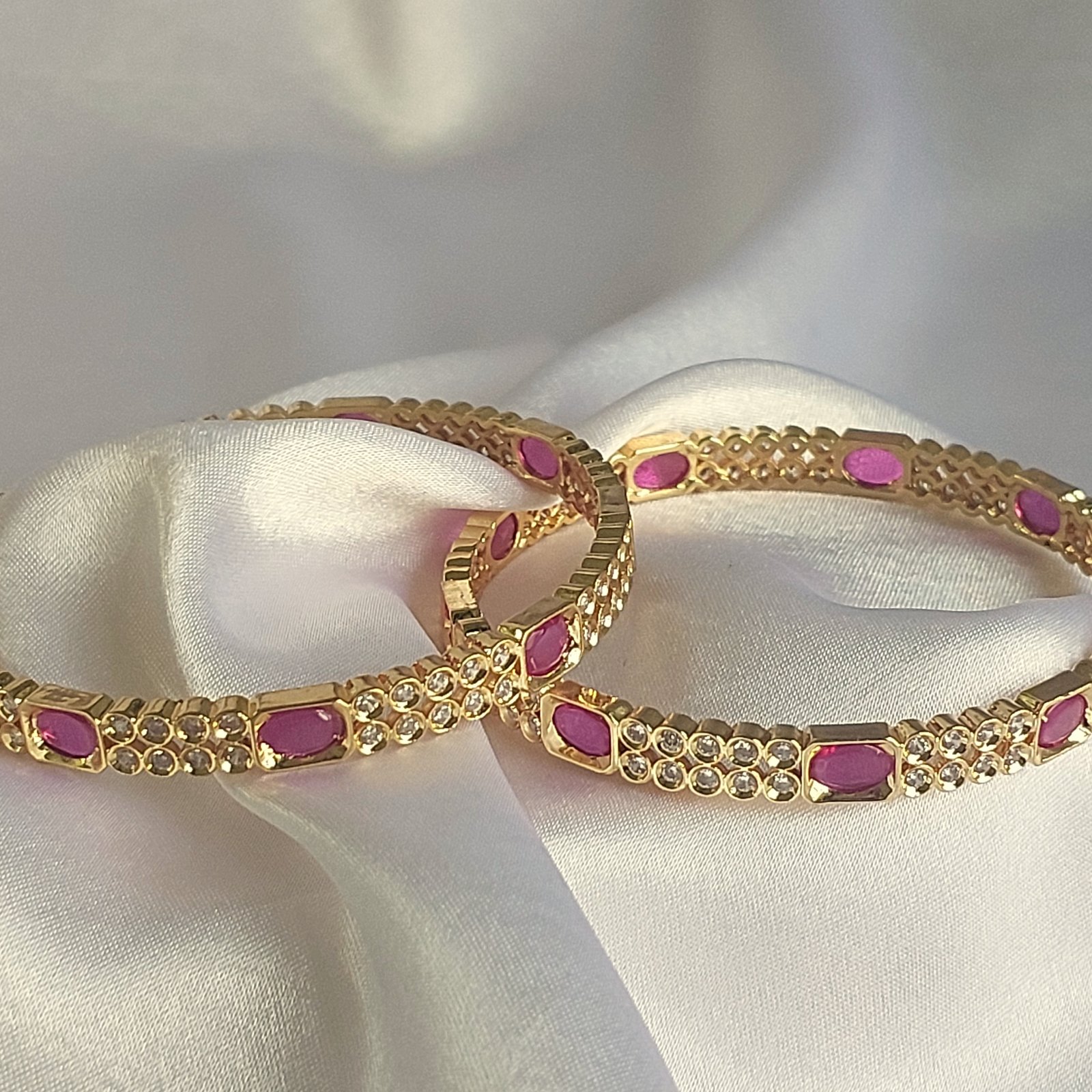 - Embellished with vibrant ruby stones and bright white accents